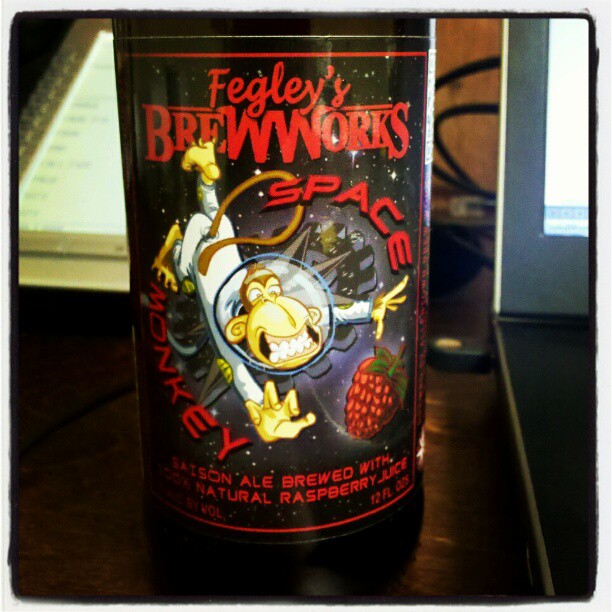 The beer up for review today is Fegley's Brew Works Space Monkey, a raspberry saison! Sounds good, right? I love a good fruit beer, and saisons are really growing on me to be a favorite of the summer season this year! This was a gift from a good friend of mine. I was as excited to drink it as he was to give it to me!