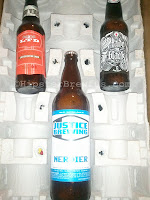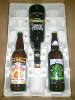 The packaging was awesome. If you've received bottle from me, you know that I tend to go a bit...batshit crazy with the bubble wrap. There wasn't a bubble to be found in this box. Instead they use these neat cardboard things with bottle-shaped cavities. For a trip from Washington to Maryland, they arrived in perfect shape, albeit a bit dusty.