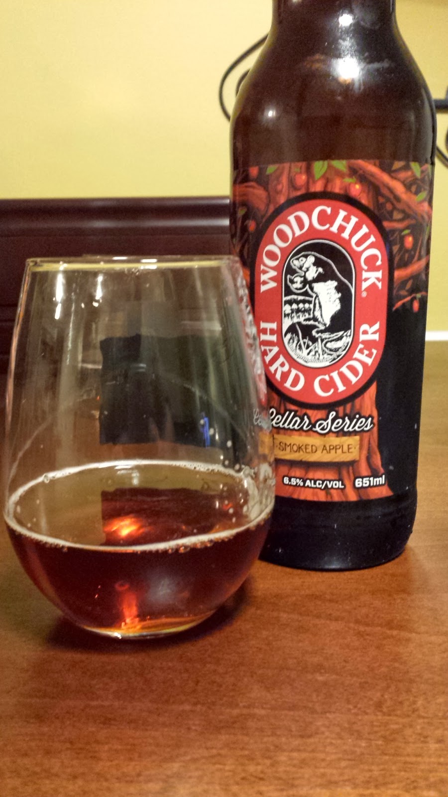 When the time came for drinking, I was excited to bust this out, which I did. Now I didn't take notes for this, but you're just going to have to trust me on this. I was surprised that the smokiness of it wasn't completely overwhelming like I was expecting (dreading). It meshed well with the more natural cider, fresh squeezed, cider characteristics I was getting. It looked beautiful, and had a nice full taste to it, and nice pronounced body to it. I'm going to attribute that to the smoked pomace they used to make this.